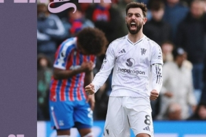 兩次助攻,官方:B費當(dāng)選曼聯(lián)2-1逆轉(zhuǎn)水晶宮隊內(nèi)最佳球員