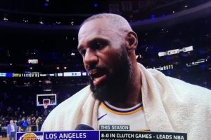 體育資訊12月8日訊 NBA常規(guī)賽,湖人客場112-108擊敗76人,詹姆斯賽后接受了媒體采訪。