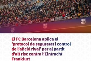 體育資訊12月8日訊 巴薩發(fā)布官方公告,12月10日4點(diǎn)在諾坎普球場(chǎng)對(duì)陣法蘭克福的歐冠比賽被列為“高風(fēng)險(xiǎn)賽事”,俱樂部已啟動(dòng)嚴(yán)格的安保管控方案。