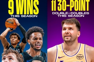 湖媒:東契奇本賽季已11次30+兩雙>獨行俠全隊勝場(9)