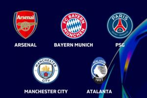 5隊(duì)分別是:阿森納、拜仁、巴黎、曼城、亞特蘭大。