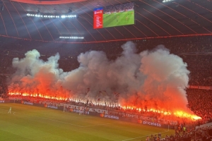 據(jù)德國媒體《圖片報(bào)》報(bào)道,比賽中的煙火是由拜仁極端球迷組織事先精心策劃的。球迷們完全清楚,如果再次發(fā)生類似事件,上賽季對(duì)陣?yán)瘴謳焐荣愃刑幍木徯烫幜P將直接觸發(fā)球迷禁賽,因此他們提前很久就策劃了這次煙火表演,以確保歐足聯(lián)的懲罰正好落在這段時(shí)間,讓禁賽在一場相對(duì)不重要的對(duì)陣圣吉羅斯的比賽中執(zhí)行,以便能在歐冠淘汰賽階段的重要比賽前“清零”處罰。