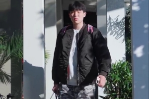 面部挫傷缺陣!楊瀚森入場穿搭與昨日一樣 迷彩褲+黑夾克+小粉包