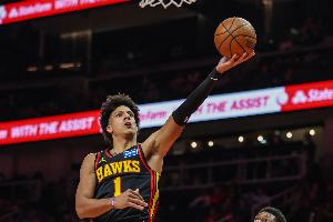 上半場,老鷹球員杰倫·約翰遜表現不錯,場上依舊全能,在18分鐘的時間里,投籃9中3,三分球2中1,拿到7分5籃板8助攻的數據。