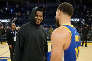 “密謀”什么好事?庫里和愛德華茲賽后擁抱熱聊