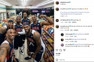 其中一張照片是美國隊巨星在一家超市里的合照、另一張是霍華德與奧拉朱旺、尤因、大衛(wèi)·羅賓遜在香港的合照。霍華德配文:“傳奇再現(xiàn),經(jīng)典瞬間!”