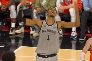 很穩(wěn)!馬刺領(lǐng)先3分點(diǎn)球戰(zhàn)術(shù)成功 切特2罰1中 文班怒吼慶祝!
