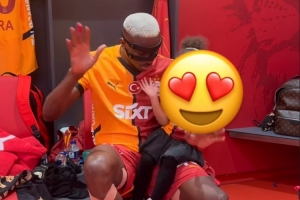 奧斯梅恩社媒曬出身穿加拉塔薩雷球衣與孩子在更衣室內(nèi)玩耍的視頻,他上賽季被外租加拉塔薩雷期間出戰(zhàn)41場比賽,打進37球,助攻8次。