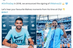 2018年7月10日,曼城官方宣布從萊斯特城簽下馬赫雷斯,轉(zhuǎn)會費6780萬歐元。曼城官方社媒曬出馬赫雷斯簽約的照片,回顧他加盟球隊的時刻。