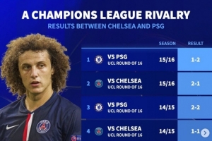 德轉(zhuǎn)列巴黎vs切爾西歷史對戰(zhàn):14到16連續(xù)3年歐冠淘汰賽相遇