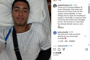 貝林厄姆寫道:“感謝安德魯-華萊士、蘇珊-亞歷山大及其醫(yī)療團(tuán)隊,以及Fortius診所的所有工作人員,感謝熱情接待并成功完成手術(shù)。還要感謝伊萬-奧爾特加和萊耶斯醫(yī)生特意前來支持。最后,感謝所有人的美好祝愿。我已經(jīng)開始了復(fù)出進(jìn)程,很快就會與大家見面。”