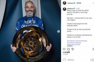 馬雷斯卡配文寫(xiě)道:“以如此精彩的方式結(jié)束24/25賽季,這是一個(gè)漫長(zhǎng)的旅程。我們做到了,我們?cè)俅我宰约旱膴Z冠!感謝球員們不懈的努力,以及全世界支持我們的球迷,感謝我的家人和朋友的支持?!?/p>