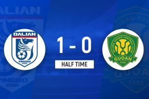 上半場(chǎng)補(bǔ)時(shí)4分鐘,大連英博1-0北京國安。