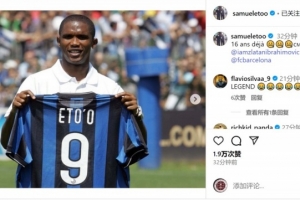 埃托奧社媒曬出自己與伊布當(dāng)時互換東家的照片,配文:“16年前?!辈伊布、國米和巴薩。