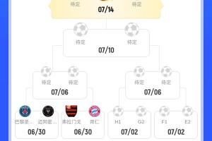 在淘汰賽1/8決賽中,拜仁將要面對(duì)D組頭名弗拉門戈,同半?yún)^(qū)另一組對(duì)陣則是巴黎圣日耳曼vs邁阿密國(guó)際;如果拜仁成功淘汰弗拉門戈,1/4決賽將面對(duì)巴黎和邁阿密國(guó)際的勝者。