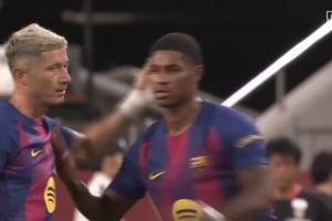 體育資訊07月27日訊 巴薩vs神戶下半場(chǎng)陣容: 什琴斯尼、孔德、阿勞霍、克里斯滕森、喬弗里-托倫斯;卡薩多、德容、奧爾莫;魯尼-巴爾德吉、萊萬多夫斯基、拉什福德。