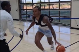 體育資訊6月25日訊 今天,馬刺記者JeffGSpursKENS5轉(zhuǎn)發(fā)了索漢的運(yùn)球訓(xùn)練視頻。