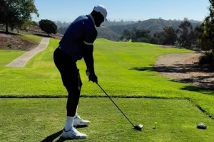 精益求精??詹姆斯曬繼續(xù)練習(xí)高爾夫 打磨揮桿動作????