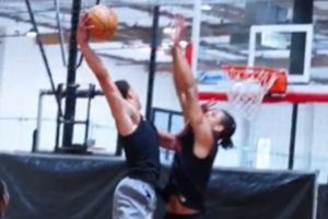 視頻中,布萊恩特以一個(gè)戰(zhàn)斧隔扣開場,非常炸裂。