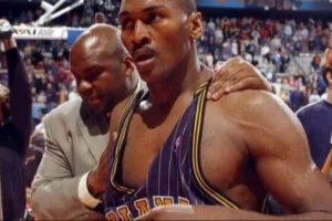 小奧尼爾當(dāng)時因?yàn)樗鸬氖录砘赜诘滋芈蛇M(jìn)行聽證會,而阿泰斯特心不在焉,還在關(guān)注他的身材與專輯銷量。這本就讓隊(duì)友們夠惱火的了,最可氣的是阿泰還在隊(duì)內(nèi)鬧事,向管理層請求交易。