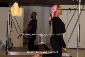 薩瓦娜轉(zhuǎn)發(fā)了一位位于洛杉磯的普拉提教練的動(dòng)態(tài),后者曬出了她指導(dǎo)詹姆斯夫婦練習(xí)普拉提的片段。
