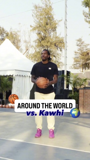 小卡盧旺達(dá)之行玩得很開心 與小球迷比拼投籃還把對方球打掉??
