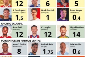 到目前為止,巴薩已經在德科的帶領下通過轉會、租借、二轉分成以及節(jié)省工資等方式入賬近7500萬歐。伊尼戈突然轉會利雅得勝利,不僅為巴薩節(jié)省出了約1400萬歐工資,球員還放棄了7月薪水和尚未付清的款項。此外,法蒂外租和朗格萊自由轉會馬競也分別為巴薩節(jié)省了1200萬歐年薪。