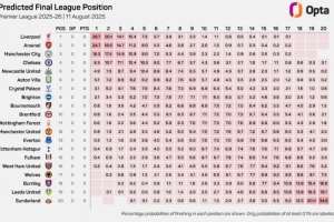 2025-26賽季英超聯(lián)賽開賽在即,看看Opta超級(jí)計(jì)算機(jī)對(duì)新賽季英超的預(yù)測(cè)。