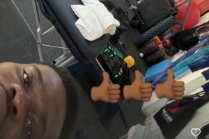 托馬斯社媒曬照,與薩利巴、廷伯一起訓(xùn)練
