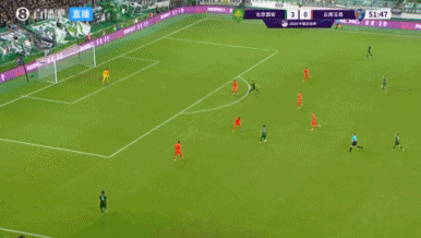 比賽第52分鐘,國(guó)安進(jìn)攻,塞爾吉尼奧禁區(qū)右側(cè)橫掃門前,林良銘包抄擊中門柱彈出。