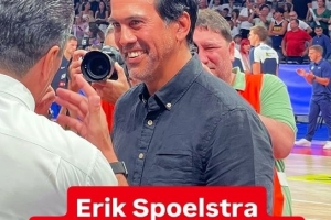 熱火教練斯波來(lái)到現(xiàn)場(chǎng)觀看了本場(chǎng)比賽,目前效力于塞爾維亞的熱火球員尼古拉-約維奇10投7中拿下全場(chǎng)最高的18分,外加7籃板。