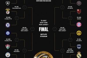 體育資訊06月27日訊 2025世俱杯16強(qiáng)全部出爐,曼城成為頭號熱門,身后是巴黎和皇馬。