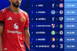 2、迪亞斯(利物浦→拜仁)7000萬歐