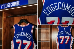 今天,76人官方曬出了埃奇庫姆的球衣,他將身穿77號(hào)。