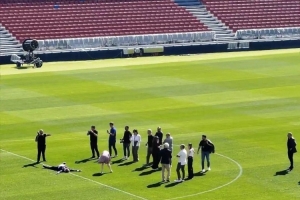 本周五,一張頗具超現(xiàn)實(shí)意味的照片在網(wǎng)絡(luò)上流傳開來。照片中,俱樂部主席拉波爾塔仰面躺在球場中央的草坪上。旁邊還有幾位攝影師和一位負(fù)責(zé)俱樂部社交媒體的工作人員,這可能是為了宣傳球隊(duì)在獲得相應(yīng)區(qū)域開放許可后重返主場的活動(dòng)。