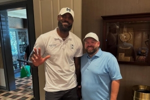 體育資訊9月2日訊 近日,美國職業(yè)高爾夫球手Colt Knost更新Instagram,曬出一張他和詹姆斯在打高爾夫時的合影。