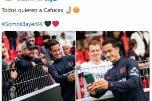 勒沃庫森的西語官推也在賽后曬出了巴斯克斯和球迷們的自拍合影并表示:“大家都喜歡‘卡??怂埂??!?/p>