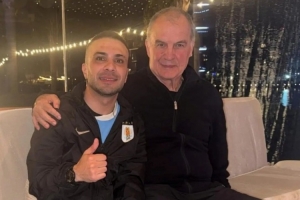 以3-0的比分戰(zhàn)勝秘魯后,烏拉圭將會連續(xù)第5次出現(xiàn)在世界杯賽場上。因此,球隊與家人、朋友和藝術(shù)家們一起舉行了一場私密的慶?;顒?,甚至連主教練貝爾薩也不愿錯過。貝爾薩在現(xiàn)場陪伴球員們度過了一個充滿舞蹈和歌聲的夜晚。盡管貝爾薩在活動中并不是顯得特別熱情,但他還是登上了主舞臺向全隊發(fā)表了講話,祝賀他們提前一輪晉級世界杯。