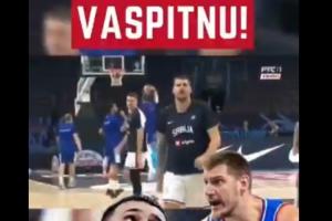 塞爾維亞VS芬蘭的賽前熱身時(shí),約基奇走過(guò)約維奇身邊給了一巴掌,約維奇有點(diǎn)懵。