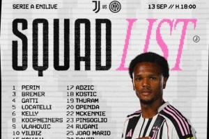 體育資訊9月13日訊 北京時(shí)間明天凌晨0點(diǎn),尤文將在意甲第三輪比賽中主場對陣國米,尤文公布了此役的球員名單。