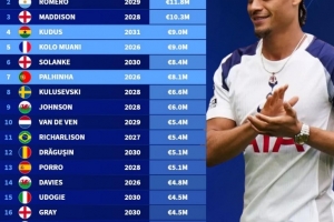 德轉(zhuǎn)盤點熱刺隊內(nèi)薪資榜:哈維-西蒙斯、羅梅羅最高,麥迪遜第三