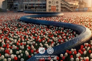 賽前,國米為此役發(fā)布視頻海報,海報中,一條藍(lán)黑巨型靈蛇正游向阿賈克斯克魯伊夫球場。