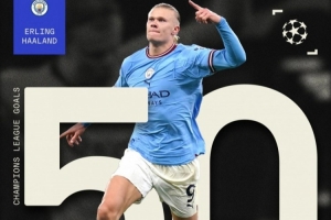 哈蘭德也成為第10位達(dá)成歐冠50球成就的球員。