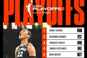 加上今天的38分,威爾遜季后賽生涯總得分來到937分,連超兩人,升至WNBA季后賽歷史得分榜第8位。