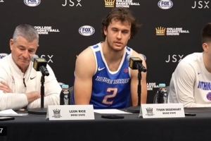 德根哈特22歲,身高6尺7,體重235磅。在代表博伊西州立大學(xué)出戰(zhàn)的138場(chǎng)比賽中,場(chǎng)均能得到14.8分5.3籃板1.4助攻1.1次搶斷,三項(xiàng)命中率分別為52%、35%、78%。