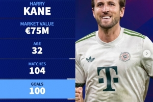 在拜仁4-0不萊梅的德甲聯(lián)賽中,凱恩完成梅開二度,打進(jìn)自己在拜仁的第100球,同時(shí)也躋身為單一俱樂(lè)部最快打進(jìn)100球的前十球員行列。