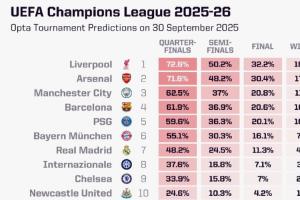 opta歐冠奪冠概率↓