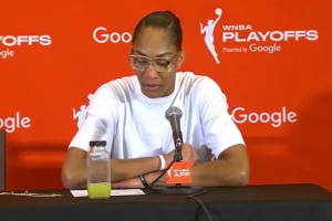 在賽后的新聞發(fā)布會上,阿賈談到了科利爾炮轟WNBA聯(lián)盟總裁凱茜-恩格波特的事情,她堅定地站在了球員一方。她表示:“我對恩格波特的言論感到惡心,很高興科利爾代表我們球員們發(fā)聲?!?/p>