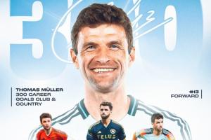 穆勒拜仁生涯756場250球,代表溫哥華白浪5場5球,代表德國隊(duì)131場45球。