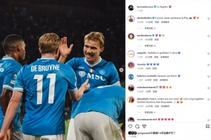 曼市連線兩度上演,德布勞內(nèi)社媒曬與霍伊倫慶祝照:歐冠之夜!